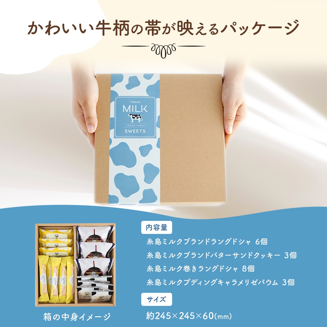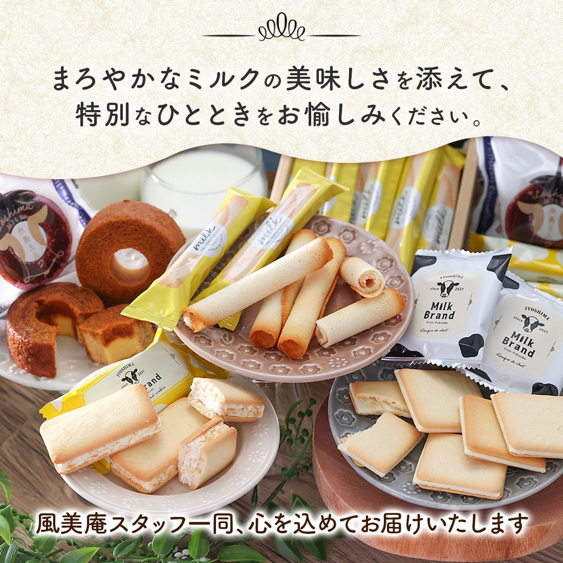 トップ > 【博多風美庵】商品一覧 > 風美庵ギフトセット > ★ご好評につきリニューアル★ 糸島ミルクスイーツギフトセット Mサイズ | 彼岸 お彼岸 焼き菓子 洋菓子 内祝い お礼 お返し お祝い プレゼント お土産 手土産 福岡 博多 個包装 送料無料 宅急便発送 Agift 【博多風美庵】商品一覧 > 糸島ミルクスイーツギフト > ★ご好評につきリニューアル★ 糸島ミルクスイーツギフトセット Mサイズ | 彼岸 お彼岸 焼き菓子 洋菓子 内祝い お礼 お返し お祝い プレゼント お土産 手土産 福岡 博多 個包装 送料無料 宅急便発送 Agift